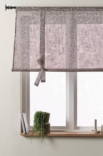 Roll up-gardin i mönstertryckt polyester som är snyggt glesvävd och lite skirare. Det läckra mönstret, som associerar till naturen på många sätt, i kombination med en lätt och smidig kvalité ger ditt fönster skön karaktär. Hängs på vanlig gardinstång. Höjden regleras med knytband. Material: 100% polyester. Storlek: Maxlängd 90 cm, minsta längd 20 cm. Välj bredd vid beställning. Skötselråd: Tvätt 30°. Krympning max 5%. Tips/råd: Trä en lätt stång eller rundstav genom kanalen i nederkant för att lättare rulla upp och få en rak nederkant. Om din gardin har vit baksida kan du vika nederkanten dubbel innan du rullar upp den på staven för att få mönstrad rulle i nederkant.