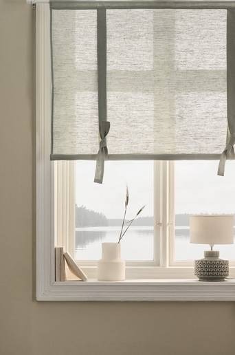 Roll up-gardin i äkta lin som är certifierat med European Flax. Linneprogrammet ELI är i sofistikerat och elegant lin, lite striktare och med en högre täthet. Lin är en kvalité som antar en mjukare textur med tiden. ELI är i fin kvalité och kommer ge dig glädje under lång tid framåt. Färgskalan är mild, naturnära och harmonisk. Roll up-gardinen hängs på vanlig gardinstång. Höjden regleras med knytband. Linne är ett fint naturmaterial som blir mjukare och mer följsamt med tiden. Ett tips för att få ett extra mjukt och fint fall är att använda en steamer när du hänger linnegardinerna på plats. Steamern kombinerar värme med ånga och gör gardinerna mer flexibla. Tips/råd: Trä en lätt stav genom kanalen i nederkant så blir det lättare att rulla upp och få en rak nederkant. Om din gardin har en vit baksida kan du vika nederkanten dubbelt innan du rullar upp den på stången för att få en mönstrad rullning i nederkanten. European Flax-certifierat lin, vilket innebär att produkten innehåller lin i hög kvalitet odlad med hänsyn till miljön och med spårbarhet i hela produktionsprocessen från planta till fiber. Licensnummer & testinstitut: BVFR7367223 Bureau Veritas Material: 100% Lin. Storlek: Max längd 90 cm, min längd 20 cm. Välj bredd vid beställning. Gramvikt: 220 g/m². Antal i förpackning: 1. Maskintvätt 30°C. Krympning max 7 %. Förläng livstiden på gardinerna genom att dammsuga dem försiktigt med mjukt munstycke med jämna mellanrum. På så vis undviker du att damm och smuts tränger in i tyget. Dessutom behåller dina gardiner färgen längre. Fläckar tas bort med varmt vatten på en ljus trasa. Dutta fläcken försiktigt med trasan, steama och låt torka.