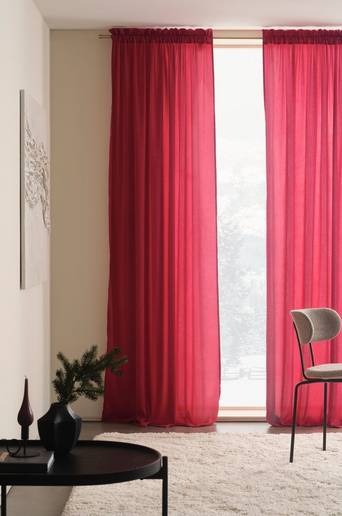 Två kanallängder av enfärgad polyester i en mjuk kvalité med fint fall och glänsande lyster. Sidorna har overlocksöm som förstärker längdernas följsamhet och fina fall. Varje längd har 5 cm kanal och 5 cm rynkhuvud. Material: 100% polyester. Storlek: Bredd per gardinlängd 135 cm. Välj längd vid beställning. Skötselråd: Tvätt 30°. Krympning max 3%. Tips/råd: Välj en gardinstång med fina ändknoppar och komplettera med matchande tofsomtag för en komplett och snygg gardinuppsättning.