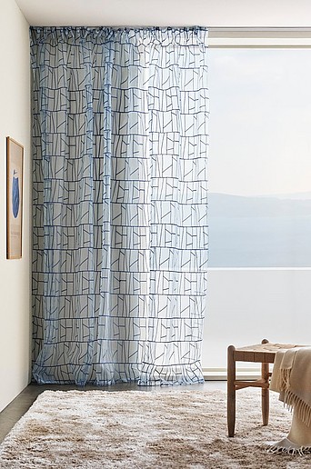En gardinlängd i organza av polyester och polyamid med broderat, oregelbundet nätmönster. Mönstret har inspirerats av bojagi som är koreansk lappteknik. Den skira längden har påsytt multifunktionsband och kan hängas upp med fingerkrokar, kanal samt dold hälla. Material: 50% polyester och 50% polyamid. Storlek: Bredd per gardinlängd 140 cm. Välj längd vid beställning. Skötselråd: Tvätt 40°. Krympning max 3%. Tips/råd: Matcha med enfärgat och få läcker effekt.
