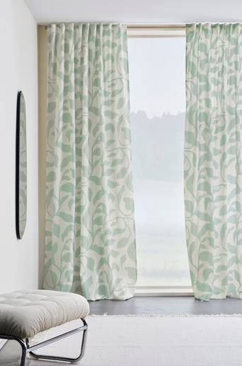 Två gardinlängder i halvpanama av bomull. Delarna i programmet DELLA har charmigt bladmönster i somrig färg tryckt på vit botten. DELLA har påsytt multifunktionsband och gardinen kan hängas upp med fingerkrokar, kanal samt dold hälla. Tygets gramvikt 170 g/m². Jotex samarbetar med Better Cotton för att förbättra bomullsodlingar över hela världen. Better Cotton är en global, ideell organisation som utbildar bomullsodlare i metoder för en mer hållbar bomullsodling och arbetar för en mer effektiv användning av vatten och minskad användning av bekämpningsmedel. Better Cotton ger bomullsodlare förbättrade sociala, ekonomiska och miljömässiga villkor. Genom att välja våra bomullsprodukter stödjer du vår investering i Better Cottons uppdrag. Better Cotton ingår i ett massbalanssystem och kan inte fysiskt spåras till slutprodukter. För mer information om Better Cotton, besök bettercotton.org/learnmore Material: 100% bomull. Storlek: Bredd per gardinlängd 145 cm. Välj längd vid beställning. Skötselråd: Tvätt 40°. Krympning max 5%. Förläng livstiden på gardinerna genom att dammsuga dem försiktigt med mjukt munstycke med jämna mellanrum. På så vis undviker du att damm och smuts tränger in i tyget. Dessutom behåller dina gardiner färgen längre. Fläckar tas bort med varmt vatten på en ljus trasa. Dutta fläcken försiktigt med trasan, steama och låt torka.