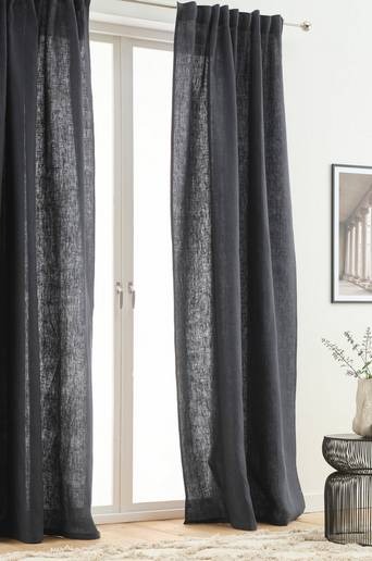 Två enfärgade gardinlängder i härligt linne med fin struktur som ger en exklusiv känsla. Med påsytt multifunktionsband. Gardinen kan hängas upp med fingerkrokar, kanal samt dold hälla. Lin är ett fint naturmaterial som blir mjukare och mer följsamt med tiden. Ett tips för att få extra mjukt och fint fall är att använda en steamer när du hängt upp linnegardinerna på plats. Steamern kombinerar värme med ånga och gör gardinerna mer följsamma. Material: 100% lin. Storlek: Bredd per gardinlängd 145 cm. Välj längd vid beställning. Skötselråd: Tvätt 40°. Krympning max 5 %. Förläng livstiden på gardinerna genom att dammsuga dem försiktigt med mjukt munstycke med jämna mellanrum. På så vis undviker du att damm och smuts tränger in i tyget. Dessutom behåller dina gardiner färgen längre. Fläckar tas bort med varmt vatten på en ljus trasa. Dutta fläcken försiktigt med trasan, steama och låt torka.