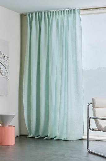 En gardinlängd i mjuk, smidig linkvalité som tillsammans med linets fina egenskaper samtidigt är vattenavvisande. Linet är certifierat med European Flax. En akrylatbehandling som varken syns eller känns ger tyget den vattenavvisande egenskapen vilket ger ett bredare användningsområde, ute som inne. Längderna har påsytt multifunktionsband och kan hängas upp med fingerkrokar, kanal eller dold hälla. Lin är ett fint naturmaterial som blir mjukare och mer följsamt med tiden. Ett tips för att få extra mjukt och fint fall är att använda en steamer när du hängt upp linnegardinerna på plats. Steamern kombinerar värme med ånga och gör gardinerna mer följsamma. European Flax-certifierat lin vilket innebär att produkten består av lin i hög kvalitet odlad med hänsyn till miljön och med spårbarhet i hela produktionsprocessen från planta till fiber. Licensnummer: BVFR10612912 Material: 100% lin. Storlek: Bredd per gardinlängd 270 cm. Välj längd vid beställning. Skötselråd: Tvätt 30°. Krympning max 5%. Förläng livstiden på gardinerna genom att dammsuga dem försiktigt med mjukt munstycke med jämna mellanrum. På så vis undviker du att damm och smuts tränger in i tyget. Dessutom behåller dina gardiner färgen längre. Fläckar tas bort med varmt vatten på en ljus trasa. Dutta fläcken försiktigt med trasan, steama och låt torka. Tips/råd: Matcha duken med fler produkter i programmet KAIA, alla delar är i vattenavvisande linkvalité.