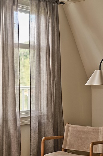 LAYER-gardinerna kombinerar elegans med praktiska egenskaper. Dessa halvgenomskinliga gardiner är tillverkade av 50 % återvunnen polyester och filtrerar försiktigt ljuset. De ger varje rum en subtil elegans samtidigt som de släpper in mjukt naturligt ljus och skapar en varm och välkomnande atmosfär. LAYER-gardinerna är perfekta för vardagsrum, sovrum eller matsalar och erbjuder en perfekt blandning av stil och funktionalitet. Med påsytt multifunktionsband. Gardinen kan hängas upp med fingerkrokar, kanal samt dold hälla. Produkten innehåller spårbart, återvunnet material och uppfyller miljömässiga och sociala krav på ansvarsfull tillverkning genom hela tillverkningsprocessen. Resurser återanvänds istället för att nya förbrukas. Material: 80% Polyester, 20% Bomull. Bredd: 140 cm. Välj längd vid beställning. Upphängningsmetod: multifunktionsband. Antal i förpackning: 2. Gramvikt: 60 g/m². Maskintvätt i 40°C. Använd inte blekmedel. Torktumla ej. Stryk på medelvarm inställning. Kemtvättas ej. Förläng livstiden på gardinerna genom att dammsuga dem försiktigt med mjukt munstycke med jämna mellanrum. På så vis undviker du att damm och smuts tränger in i tyget. Dessutom behåller dina gardiner färgen längre. Fläckar tas bort med varmt vatten på en ljus trasa. Dutta fläcken försiktigt med trasan, steama och låt torka. Krympning max 5 %.