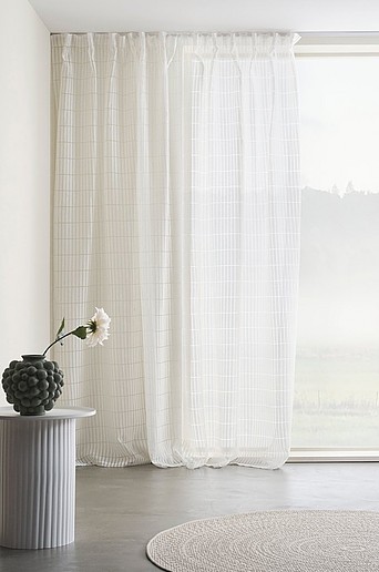 En extra bred gardinlängd i skir och luftig kvalitet av viskos och polyester med mönster som är delvis transparent, en så kallad burn out. Gardinen är tunn och får fint fall. Längden har påsytt multifunktionsband. Gardinen kan hängas upp med fingerkrokar, kanal samt dold hälla. Material: 66% viskos och 34% polyester. Storlek: Bredd per gardinlängd 280 cm. Välj längd vid beställning. Skötselråd: Tvätt 40°. Krympning max 5%. Förläng livstiden på gardinerna genom att dammsuga dem försiktigt med mjukt munstycke med jämna mellanrum. På så vis undviker du att damm och smuts tränger in i tyget. Dessutom behåller dina gardiner färgen längre. Fläckar tas bort med varmt vatten på en ljus trasa. Dutta fläcken försiktigt med trasan, steama och låt torka.
