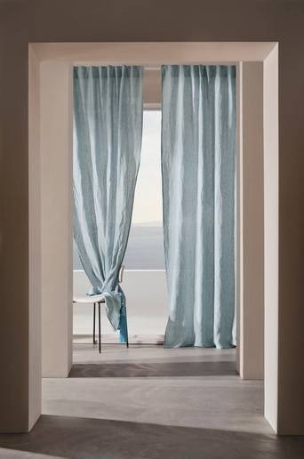 Två gardinlängder i 100% lin och med påsytt multifunktionsband. Gardinen kan hängas upp med fingerkrokar, kanal samt dold hälla. Linne är rustikt och naturnära med sin typiska linnestruktur och härliga känsla, och den milda färgskalan förstärker det naturliga. Lin är ett fint naturmaterial som blir mjukare och mer följsamt med tiden. Ett tips för att få extra mjukt och fint fall är att använda en steamer när du hängt upp linnegardinerna på plats. Steamern kombinerar värme med ånga och gör gardinerna mer följsamma. Denna produkt är European Flax certifierad, BVIN3654832. Det garanterar att linproduktionen kommer från odling som tar hänsyn till miljön och är producerad utan spill, konstbevattning eller genmodifierade grödor. Material: 100% lin. Storlek: Bredd per gardinlängd 140 cm. Välj längd vid beställning. Skötselråd: Tvätt 60°. Krympning max 5%. Förläng livstiden på gardinerna genom att dammsuga dem försiktigt med mjukt munstycke med jämna mellanrum. På så vis undviker du att damm och smuts tränger in i tyget. Dessutom behåller dina gardiner färgen längre. Fläckar tas bort med varmt vatten på en ljus trasa. Dutta fläcken försiktigt med trasan, steama och låt torka.