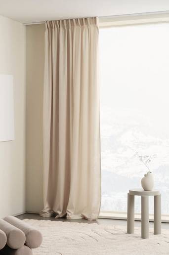 En gardinlängd i enfärgad sammet av polyester. Sammet har fin lyster och mjuk känsla, färgen skimrar vackert i olika ljus. Längden har påsytt multifunktionsband. Gardinen kan hängas upp med fingerkrokar, kanal samt dold hälla. Material: 100% polyester. Storlek: Bredd 140 cm. Välj längd vid beställning. Skötselråd: Tvätt 40°. Krympning max 3%. Tips/råd: Förläng livstiden på gardinerna genom att dammsuga dem försiktigt med mjukt munstycke med jämna mellanrum. På så vis undviker du att damm och smuts tränger in i tyget. Dessutom behåller dina gardiner färgen längre. Fläckar tas bort med varmt vatten på en ljus trasa. Dutta fläcken försiktigt med trasan, steama och låt torka.