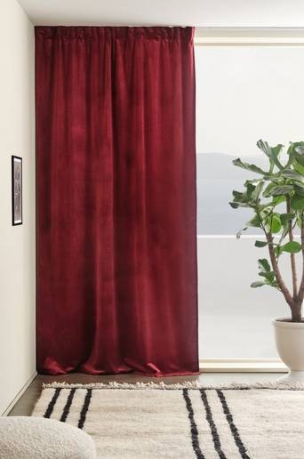 En gardinlängd i enfärgad sammet av polyester. Sammet har fin lyster och mjuk känsla, färgen skimrar vackert i olika ljus. Längden har påsytt multifunktionsband. Gardinen kan hängas upp med fingerkrokar, kanal samt dold hälla. Material: 100% polyester. Storlek: Bredd 140 cm. Välj längd vid beställning. Skötselråd: Tvätt 40°. Krympning max 3%. Tips/råd: Förläng livstiden på gardinerna genom att dammsuga dem försiktigt med mjukt munstycke med jämna mellanrum. På så vis undviker du att damm och smuts tränger in i tyget. Dessutom behåller dina gardiner färgen längre. Fläckar tas bort med varmt vatten på en ljus trasa. Dutta fläcken försiktigt med trasan, steama och låt torka.