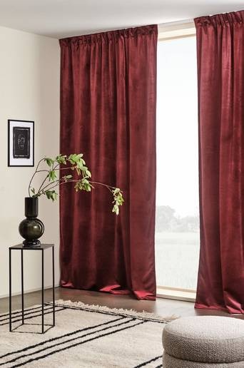 Två gardinlängder i elegant sammet av polyester. Sammetstyget skimrar vackert, färgnyansen upplevs olika beroende på hur ljuset faller. Längden har påsytt multifunktionsband. Gardinen kan hängas upp med fingerkrokar, kanal samt dold hälla. Material: 100% polyester. Storlek: Bredd 140 cm. Välj längd vid beställning. Skötselråd: Tvätt 40°. Krympning max 3%. Tips/råd: Förläng livstiden på gardinerna genom att dammsuga dem försiktigt med mjukt munstycke med jämna mellanrum. På så vis undviker du att damm och smuts tränger in i tyget. Dessutom behåller dina gardiner färgen längre. Fläckar tas bort med varmt vatten på en ljus trasa. Dutta fläcken försiktigt med trasan, steama och låt torka.