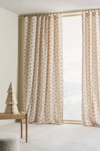 Två gardinlängder av plaggtvättad bomull med rött mönstertryck på naturbeige, vävd botten. SNOW med skira snöstjärnor passar fint i juletid på ett hemtrevligt och klassiskt sätt. Påsytt multifunktionsband upptill gör att gardinen kan hängas upp med fingerkrokar, kanal samt dold hälla. Plaggtvättad innebär att produkten tvättats efter sömnad och blir extra mjuk och följsam. Tygets gramvikt 170 g/m². Jotex samarbetar med Better Cotton för att förbättra bomullsodlingar över hela världen. Better Cotton är en global, ideell organisation som utbildar bomullsodlare i metoder för en mer hållbar bomullsodling och arbetar för en mer effektiv användning av vatten och minskad användning av bekämpningsmedel. Better Cotton ger bomullsodlare förbättrade sociala, ekonomiska och miljömässiga villkor. Genom att välja våra bomullsprodukter stödjer du vår investering i Better Cottons uppdrag. Better Cotton ingår i ett massbalanssystem och kan inte fysiskt spåras till slutprodukter. För mer information om Better Cotton, besök bettercotton.org/learnmore Material: 100% bomull. Storlek: Bredd per gardinlängd 145 cm. Välj längd vid beställning. Skötselråd: Tvätt 40°. Krympning max 5%. Förläng livstiden på gardinerna genom att dammsuga dem försiktigt med mjukt munstycke med jämna mellanrum. På så vis undviker du att damm och smuts tränger in i tyget. Dessutom behåller dina gardiner färgen längre. Fläckar tas bort med varmt vatten på en ljus trasa. Dutta fläcken försiktigt med trasan, steama och låt torka. Tips/råd: Matcha med kuddfodral med samma mönster och skapa härlig julstämning.