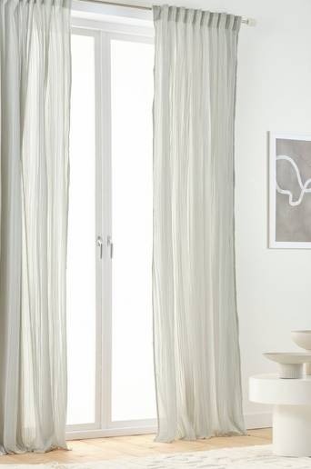 Två gardinlängder i plisserad polyester och med påsytt multifunktionsband. Det skira tyget har små lagda veck som gör längderna speciella. Nederkanten har en tät overlocksöm så att plisseringen får ett smidigt avslut och vecken faller fint. Gardinen kan hängas upp med fingerkrokar, kanal samt dold hälla. Material: 100% polyester. Storlek: Bredd per gardinlängd 135 cm. Välj längd vid beställning. Skötselråd: Kemtvätt. Tips/råd: Med nya gardiner och vacker dekoration på fönsterbrädan får du ett nytt, fräscht fönster.