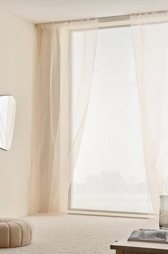 Två gardinlängder i enfärgad organza av polyester och polyamid. Organza är ett vävt tyg som är transparent med skir och lyxig känsla. Gardinerna är eleganta i sin ensamhet och vackra att kombinera med exempelvis längder i linnetyg som skapar spännande materialmix. Material: 50% polyester och 50% polyamid. Storlek: Bredd per gardinlängd 145 cm. Välj längd vid beställning. Skötselråd: Tvätt 40°. Krympning max 5 %. Tips/råd: XENO av organza är ett bra val när du vill släppa in ljuset och samtidigt motverka direkt insyn och få en aning insynsskydd.