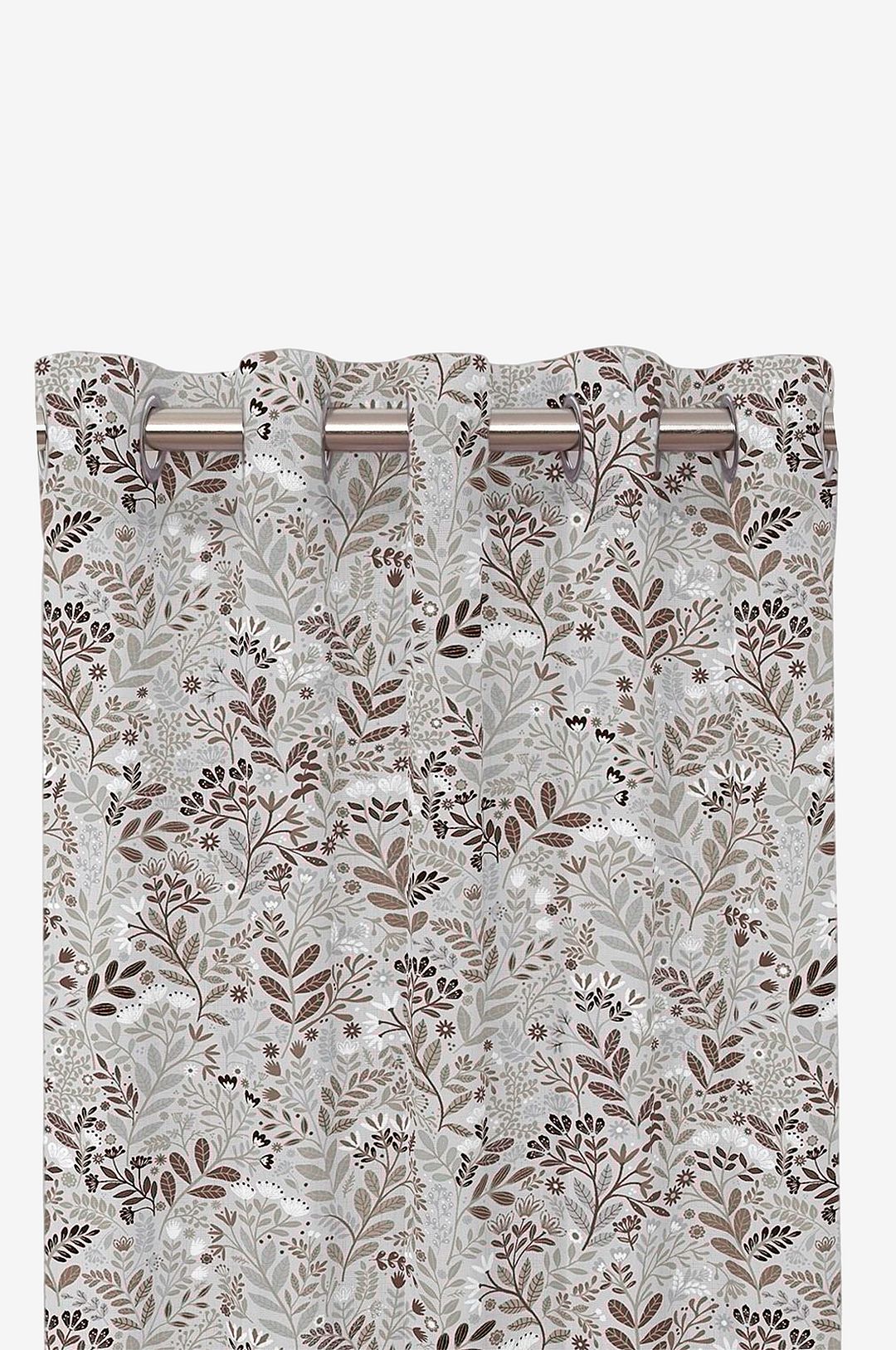 Öljettgardiner med ett småmönstrat design av en svensk designer, överlock i nederkanten.