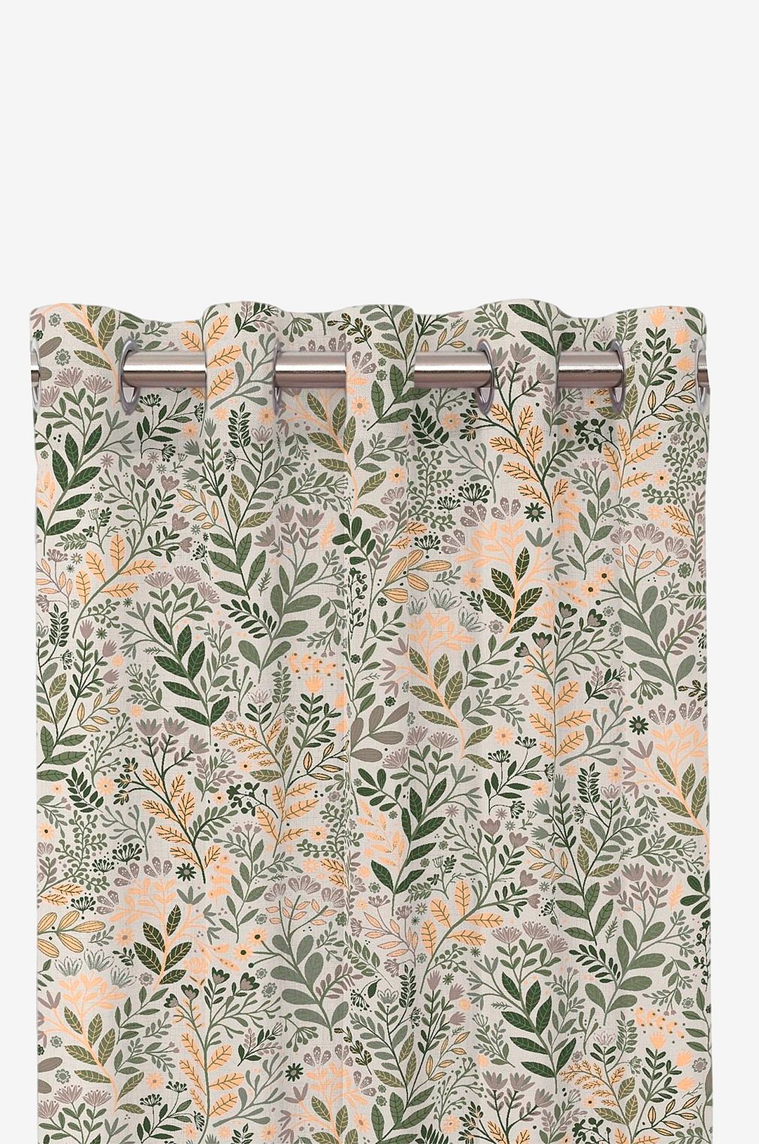 Öljettgardiner med ett småmönstrat design av en svensk designer, överlock i nederkanten.