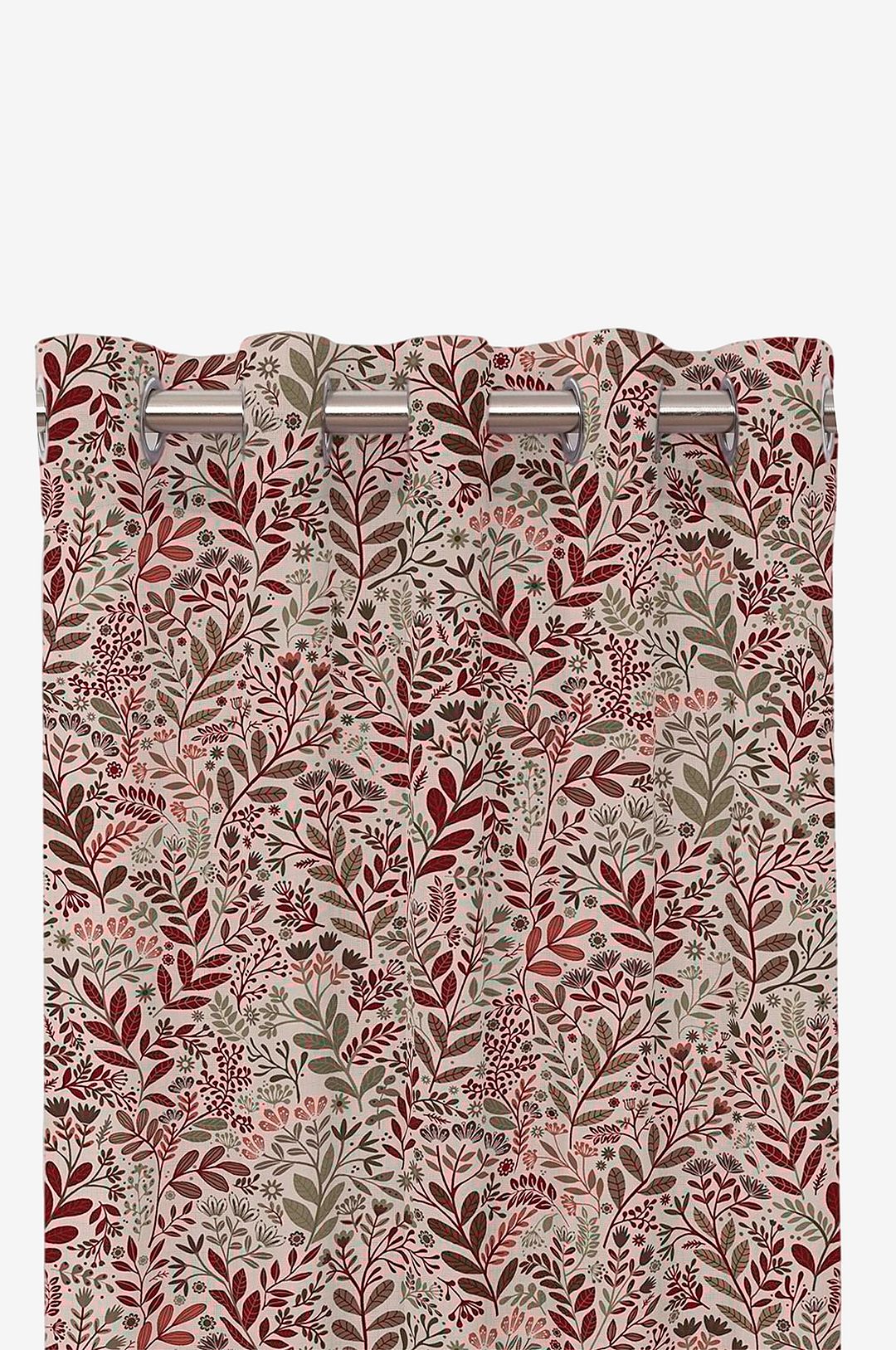 Öljettgardiner med ett småmönstrat design av en svensk designer, överlock i nederkanten.