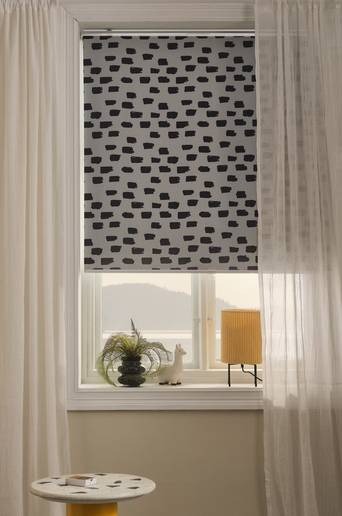 WYANDRA är en mörkläggande rullgardin av polyester. Det kraftiga tyget blockerar ut ljuset och mörklägger barnkammaren, sovrummet eller tv-rummet. Rullgardinen har metallfäste upptill som du fäster i väggen. Nedtill sitter en rund metallstav. Ett transparent plastgrepp på den nedre staven gör att du enkelt drar ned och skjuter upp rullgardinen. Rullgardinen har mönster av penseldrag på sidan som är in mot rummet och ljusblockerande beläggning på baksidan. Fästen ingår. Enkel att montera. Monteringsanvisning medföljer. Material: 100% polyester. Storlek: Maxhöjd 165 cm. Bredden gäller gardinen inkl. fäste. Välj bredd vid beställning. Skötselråd: Torkas med fuktig trasa.