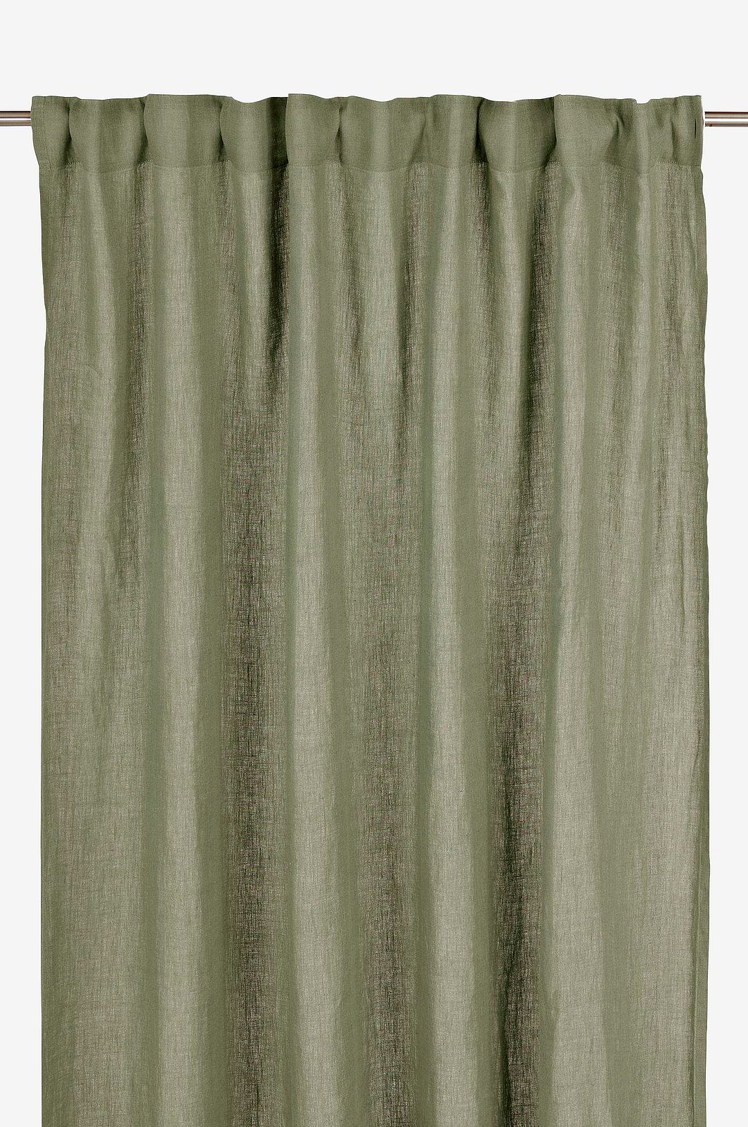 2-pack gardin i lätt tumlat linne med tungt men mjukt fall. Linet ger tyget en naturlig struktur och rustik känsla. Gardinen har multiband i ovankant, fållade långsidor och overlocksöm i nederkant. Multibandet är en flexibel lösning som gör att gardinen kan hängas upp antingen med fingerkrokar, räkor eller direkt på en stång beroende på vilken typ av veck och vilket fall du vill ha. Använd snabbfållningsband för att få önskad längd på gardinlängden. Kan krympa upp till 5-7 %. Produkten är certifierad enligt STANDARD 100 by OEKO-TEX®. Certifieringen garanterar att produkten är testad och fri från ämnen som kan vara skadliga för hälsan och miljön. 100% Linne.