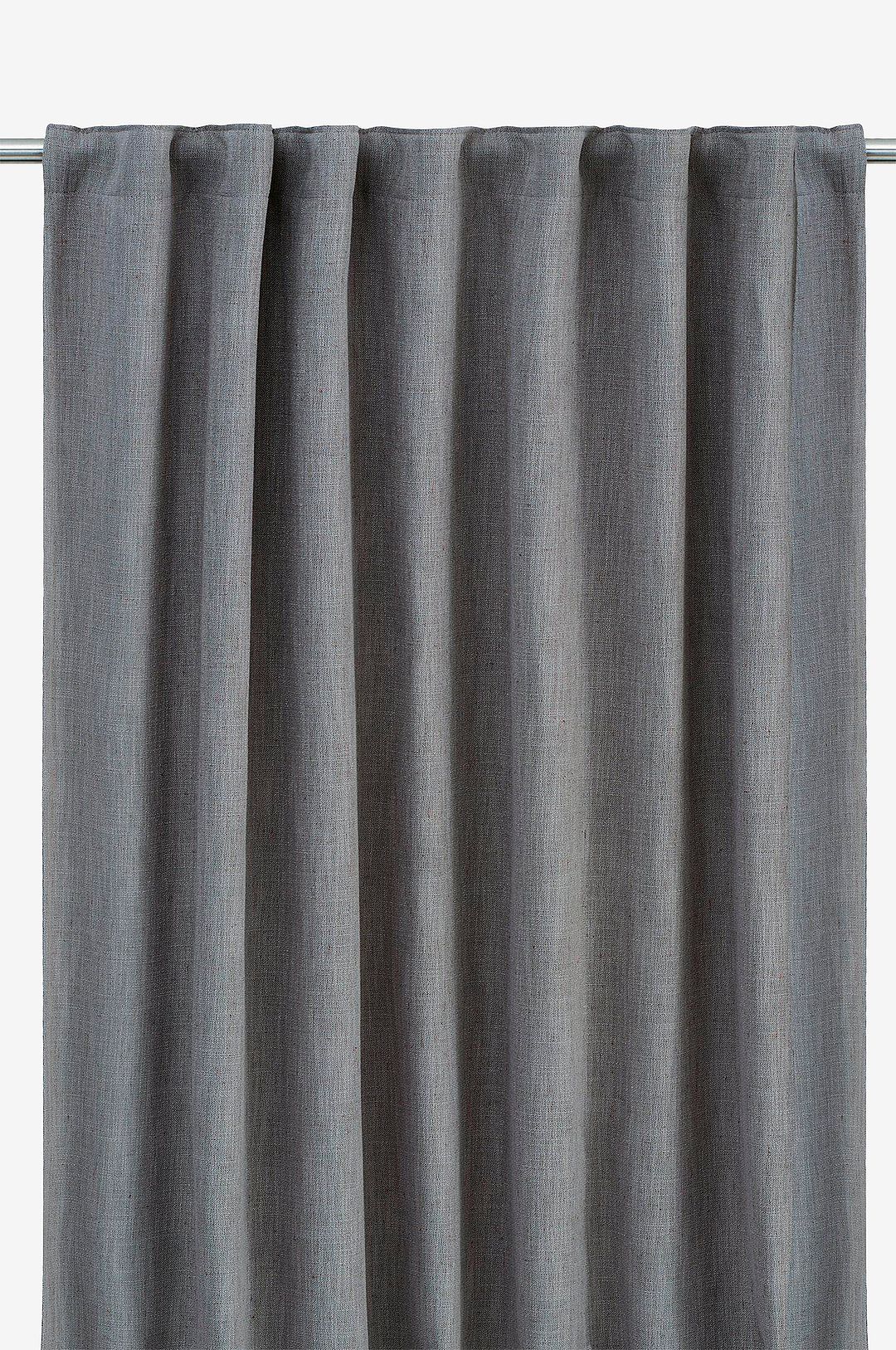 1-pack gardinlängd med multiband i ovankant, fållade långsidor och overlocksöm i nederkant. Tyget innehåller 30% lin vilket ger en vacker struktur. Mörkläggningseffekten är 70%. Använd snabbfållningsband för att få rätt längd på gardinen. Multibandet är en flexibel lösning som gör att gardinen kan hängas upp antingen med fingerkrokar, räkor eller direkt på en stång beroende på vilken typ av veck och vilket fall du vill ha på gardinen. Produkten är certifierad enligt standard 100 by oeko-tex®. Certifieringen garanterar att produkten är testad och fri från ämnen som kan vara skadliga för hälsan och miljön. 70% polyester, 30% lin.