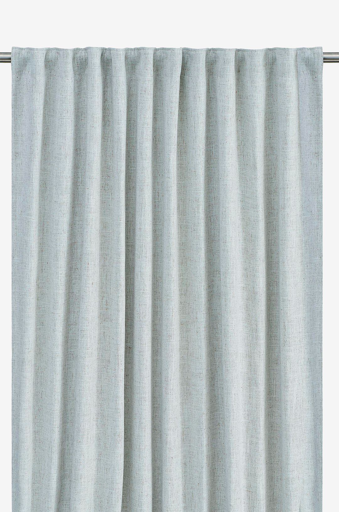 2-pack mörkläggande gardinlängd med multiband i ovankant, fållade långsidor och overlocksöm i nederkant. Tyget innehåller 30% lin vilket ger en vacker struktur. Mörkläggningseffekten är 70%. Använd snabbfållningsband för att få rätt längd på gardinen. Måttet på varje gardin är 130x280cm. Multibandet är en flexibel lösning som gör att gardinen kan hängas upp antingen med fingerkrokar, räkor eller direkt på en stång beroende på vilken typ av veck och vilket fall du vill ha på gardinen. Produkten är certifierad enligt standard 100 by oeko-tex®. Certifieringen garanterar att produkten är testad och fri från ämnen som kan vara skadliga för hälsan och miljön. 70% polyester, 30% lin.