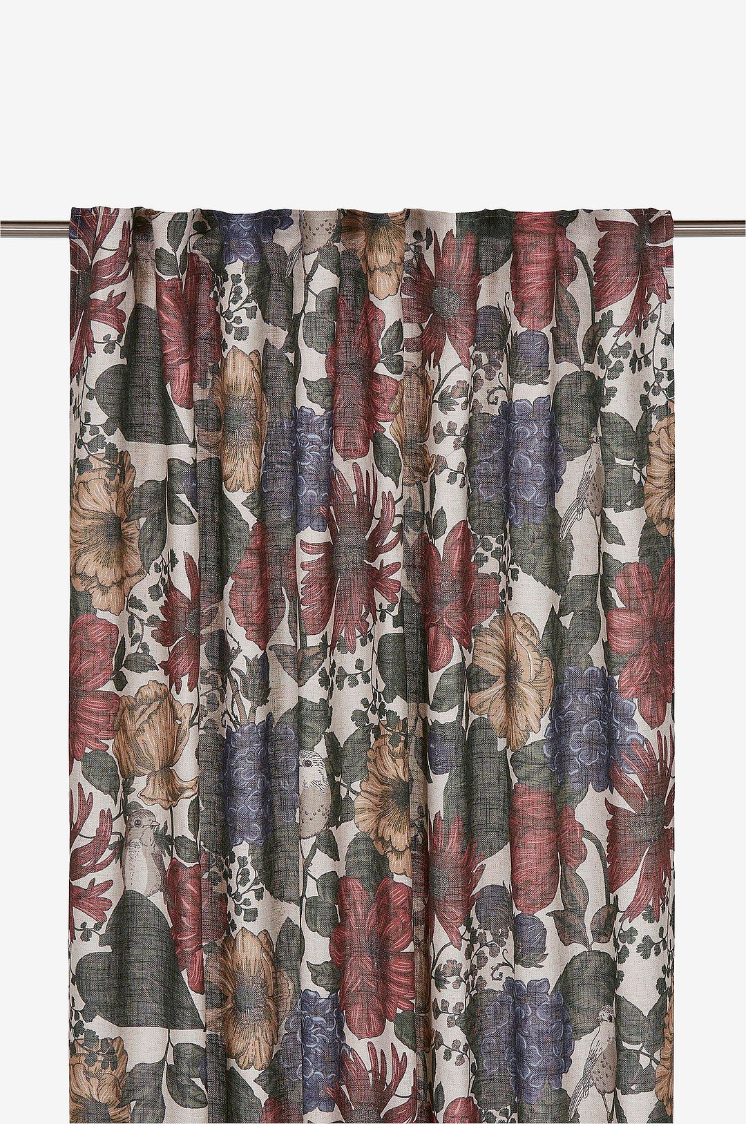 2-pack multibandslängder med tryckt mönster på en skir kvalitet med linneinslag. Gardinen har multiband i ovankant, fållade långsidor och overlocksöm i nederkant. Använd snabbfållningsband för att få rätt längd på gardinen. Måttet på varje gardin är 135x280cm. Multibandet är en flexibel lösning som gör att gardinen kan hängas upp antingen med fingerkrokar, räkor eller direkt på en stång beroende på vilken typ av veck och vilket fall du vill ha på gardinen. Produkten är certifierad enligt standard 100 by oeko-tex®. Certifieringen garanterar att produkten är testad och fri från ämnen som kan vara skadliga för hälsan och miljön. 90% polyester, 10% lin.