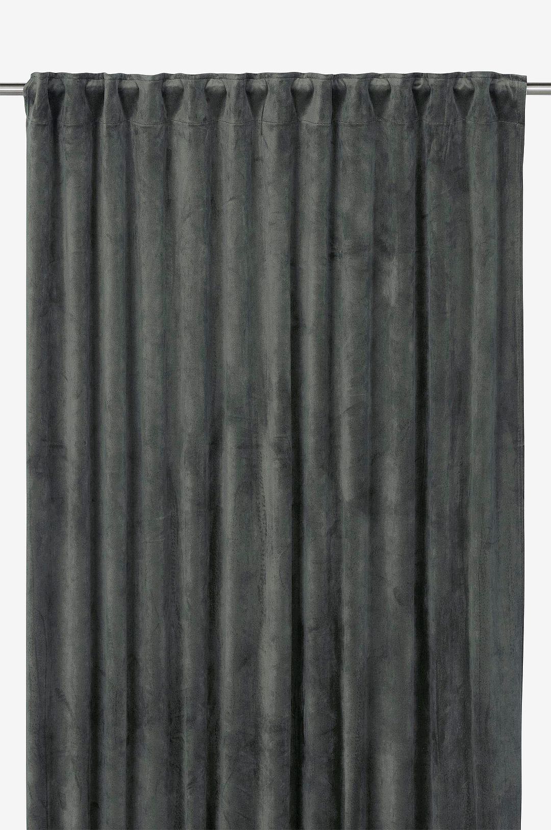 2-pack gardinlängder i sammet av fin kvalitet. Elise finns i flera olika färger. Gardinen har ett multiband i ovankant, fållade långsidor och overlockssöm i nederkant. Använd snabbfållningsband för att få rätt längd på gardinen. Multiband är en flexibel lösning som gör att gardinen kan hängas upp med fingerkrokar, räkor eller direkt på stång beroende på vilken typ av veck och vilket fall man vill ha på gardinen. Mått: 135×280 cm. 100% Polyester.