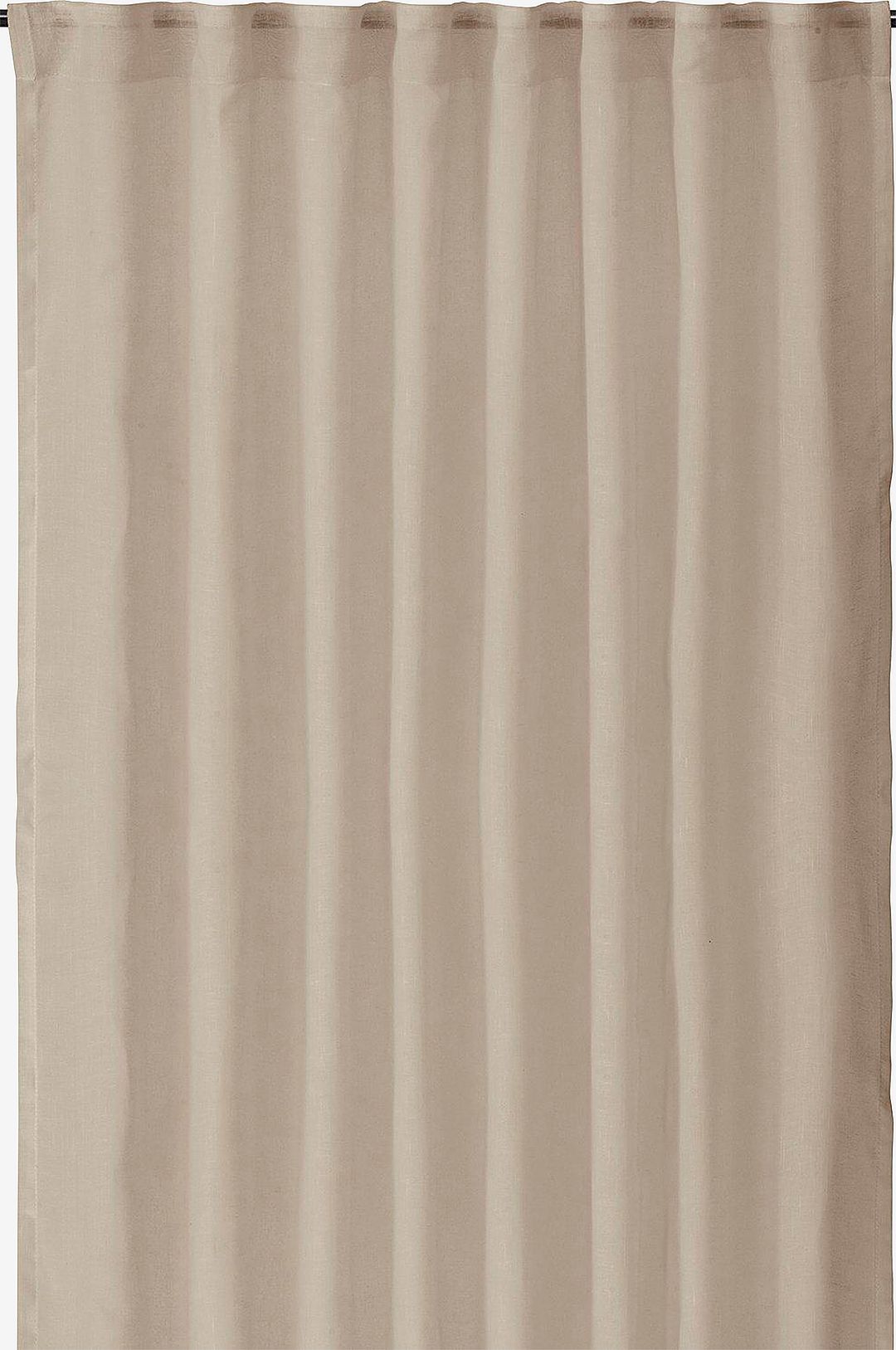 1-st tunna, skira gardinlängder med fint fall. Gardinen har ett multiband i ovankant, fållade långsidor och overlockssöm i nederkant. Använd snabbfållningsband för att få rätt längd på gardinen. Multiband är en flexibel lösning som gör att gardinen kan hängas upp med fingerkrokar, räkor eller direkt på stång beroende på vilken typ av veck och vilket fall man vill ha på gardinen. Mått: 140×260 cm. 100% Polyester.