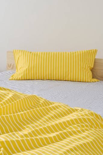 SIMA örngott tillverkat av ekologisk bomull. Tryckta ränder i krispiga färger. Förvandla ditt sovrum till en vilsam plats. Licensnummer & testinstitut: ETKO 00004150 ETKO. Produkten är certifierad med Global Organic Textile Standard (GOTS), vilket innebär att den innehåller ekologiskt material som är odlat utan kemiska bekämpningsmedel, konstgödsel och genmodifierade grödor (GMO). Produkten uppfyller GOTS sociala och miljömässiga krav på ansvarsfull tillverkning från odling till slutprodukt. Material: 100% Bomull. Storlek: 90 x 50 cm. Trådtäthetför 144 TC. (Trådantalet avser antalet trådar, trådantal, per kvadratcentimeter i ett tyg. Ju högre trådantal, desto högre kvalitet). Maskintvätt 60°. Använd inte blekmedel. Torktumla i normal temperatur. Strykning hög temp. Högsta temp. 200°C. Kemtvätt (endast petroleum-lösningsmedel). Krympning max 5 %. Tvättas före användning. Tvättas med avigsidan ut.
