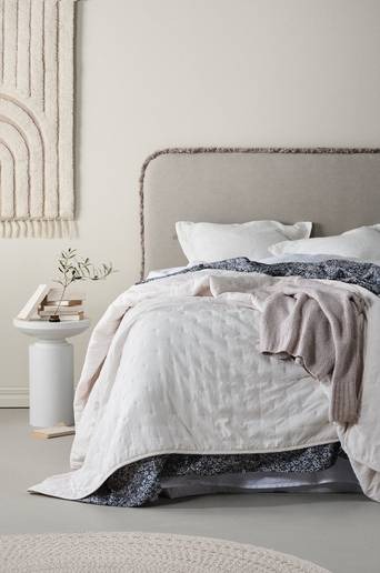 Överkast för enkelsäng, sytt i mjuk polyester som tvättats för att få en skön känsla. Överkastet har enkel quiltning av broderade små kryss som bildar ett diskret mönster vilket ger liv och samtidigt håller fyllningen på plats. Bandkantning runt om förstärker den mjuka stilen. Överkastets baksida är av polyester. Obs! Kuddfodral medföljer ej, köps separat. Material: 100% polyester, fyllning 100% polyester. Storlek: 150×250 cm. Skötselråd: Tvätt 40°. Krympning max 3%. Tips/råd: Överkastet CALM ger en mjuk och avslappnad bäddning, förstärk känslan med många extra kuddar när du bäddar.