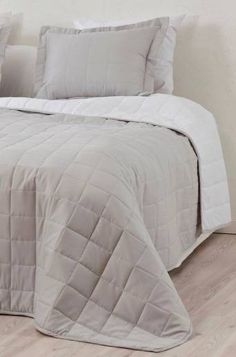 Överkast för enkelsäng i polyester. Ett quiltat överkast med en mjuk, skön yta. Vändbart med en ljus och en mörk sida i flera lättmatchade färger. Kuddfodral medföljer ej, köps separat. Material: 100% polyester. Storlek: 150×250 cm. Skötselråd: Tvätt 40°. Krympning max 3%. Tips/råd: Bädda upp sängen med massor av kuddar i olika storlekar för att få till en riktig lyxig hotellbäddning.