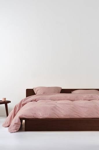 ALMA påslakanset är tillverkat av mjuk bäckebölja, med eleganta garnfärgade ränder som ger en romantisk touch till ditt sovrum. Med sin knappstängning innehåller setet ett extra brett påslakan och två matchande örngott. Som en del av ALMA-FAMILJEN förstärker detta set en sammanhängande estetik med ytterligare matchande föremål, som blandar både komfort och stil för dem som värnar om en romantisk atmosfär i sitt hem. Öppning i de övre hörnen av påslakanet, för att göra det lättare att trä påslakanet över täcket. Vi samarbetar med Better Cotton för att förbättra bomullsodlingar över hela världen. Better Cotton är en global, ideell organisation som utbildar bomullsodlare i metoder för en mer hållbar bomullsodling och arbetar för en mer effektiv användning av vatten och minskad användning av bekämpningsmedel. Better Cotton ger bomullsodlare förbättrade sociala, ekonomiska och miljömässiga villkor. Genom att välja våra bomullsprodukter stödjer du vår investering i Better Cottons uppdrag. Better Cotton ingår i ett massbalanssystem och kan inte fysiskt spåras till slutprodukter. För mer information om Better Cotton, besök bettercotton.org/learnmore. Material: 100% Bomull. 3-delat set: 1 påslakan 220×210 cm, 2 örngott 50×60 cm. Trådtäthet: 136.0 TC. (Trådantalet avser antalet trådar, trådantal, per kvadratcentimeter i ett tyg. Ju högre trådantal, desto högre kvalitet). Hantverksteknik: garnfärgad. Stängning påslakan: knapp. Stängning örngott: kuvertstängning. Maskintvätt 60°. Använd inte blekmedel. Torktumla i normal temperatur. Stryk på medelvarm inställning. Kemtvättas ej. Tvätta separat. Krympning max 5 %.