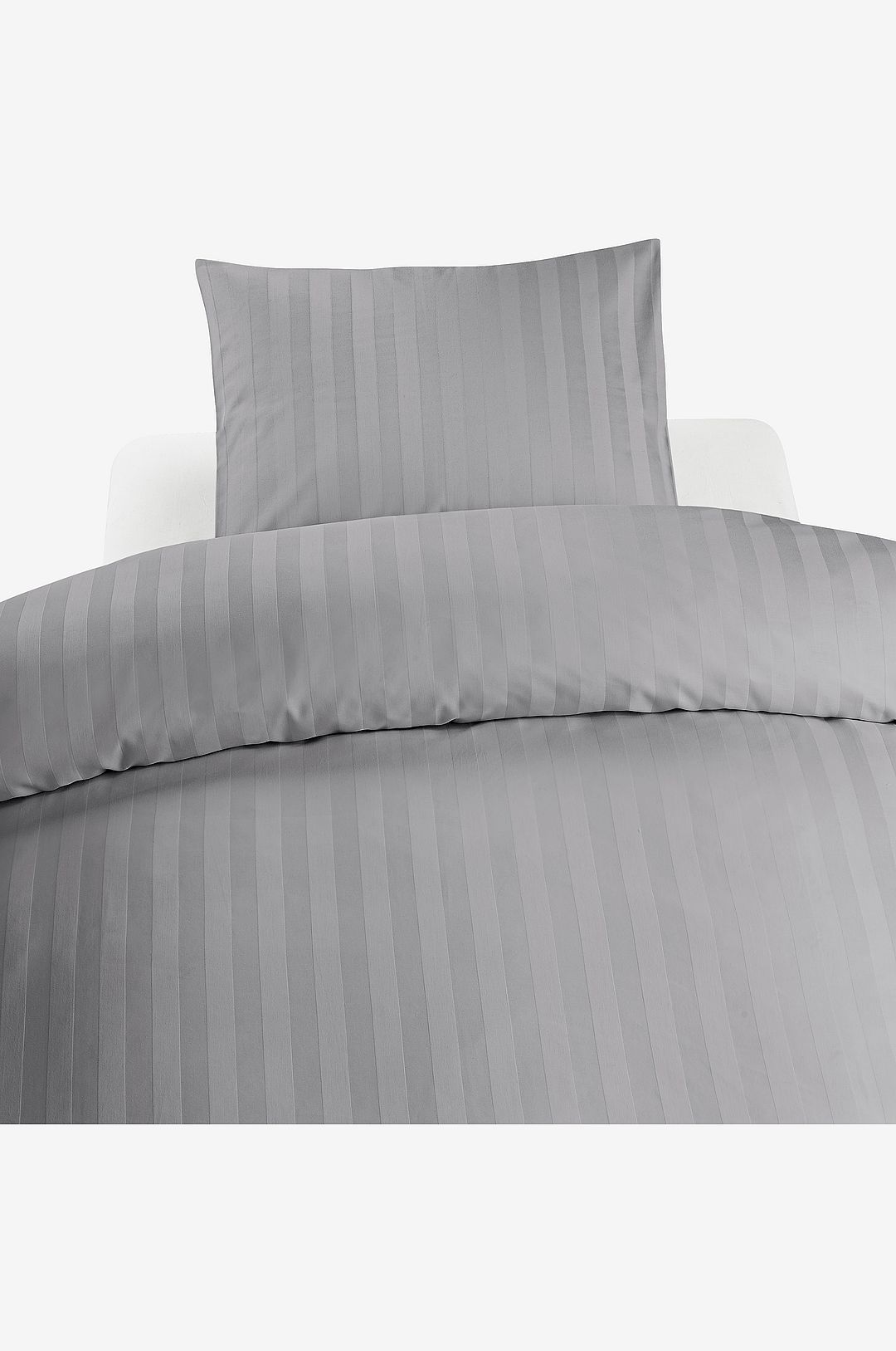 Bäddset bestående av ett örngott och ett påslakan i bomullssatin med en fin lyster. Klassiskt mönster med vävda matta och blanka ränder. Satin-serien finns i flera olika färger för både enkel- och dubbelsäng.100% Bomull
