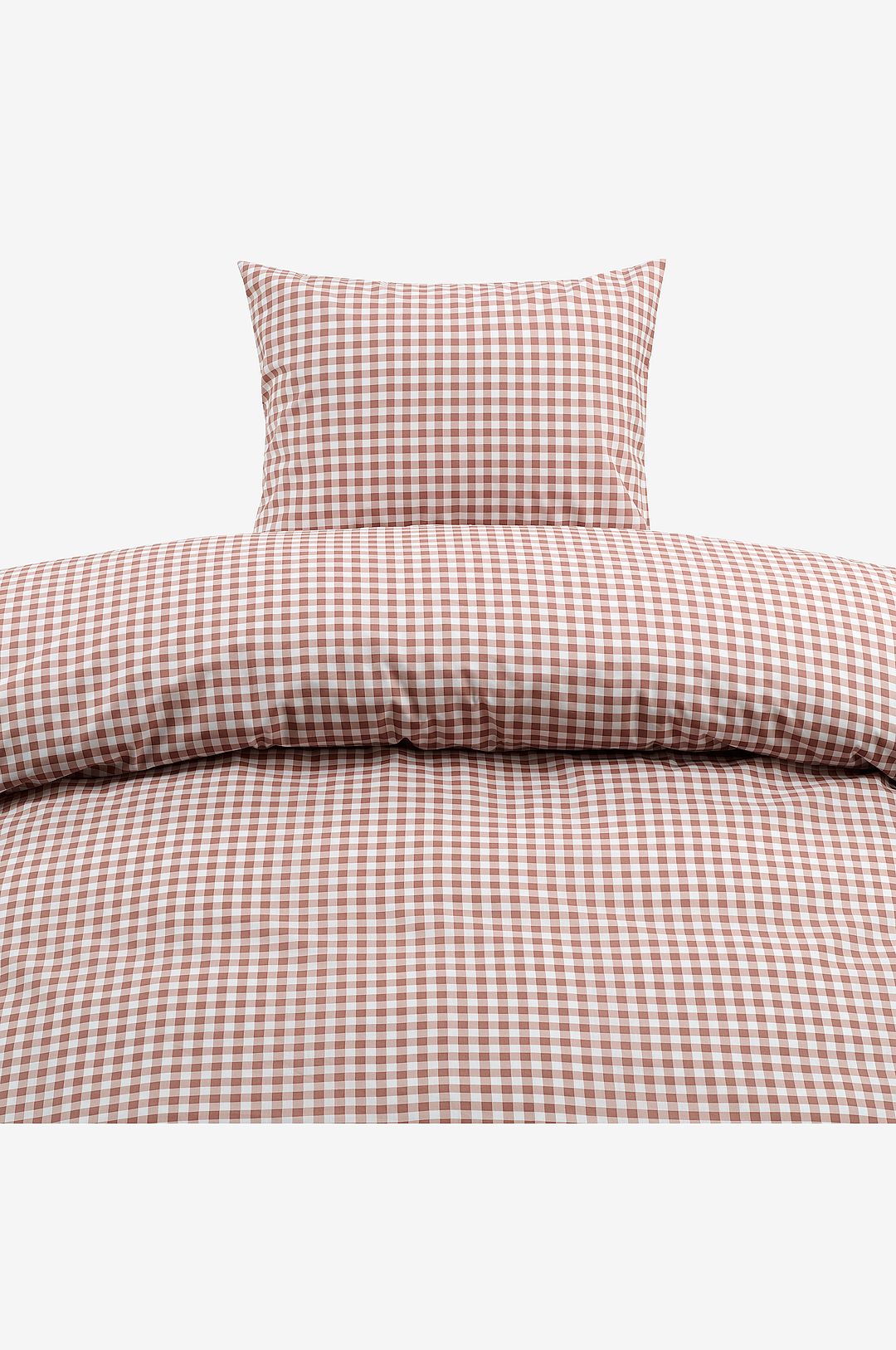 Borganäs bäddset med smårutigt mönster. Ett påslakan (150×210 cm) och ett örngott (50×60 cm), tillverkade av 100% bomull.