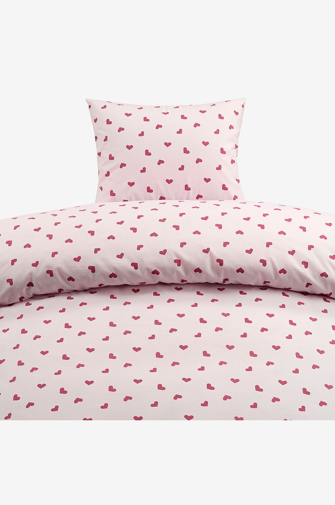 Borganäs bäddset med hjärtan. Ett påslakan (150×210 cm) och ett örngott (50×60 cm), tillverkade av 100% bomull.