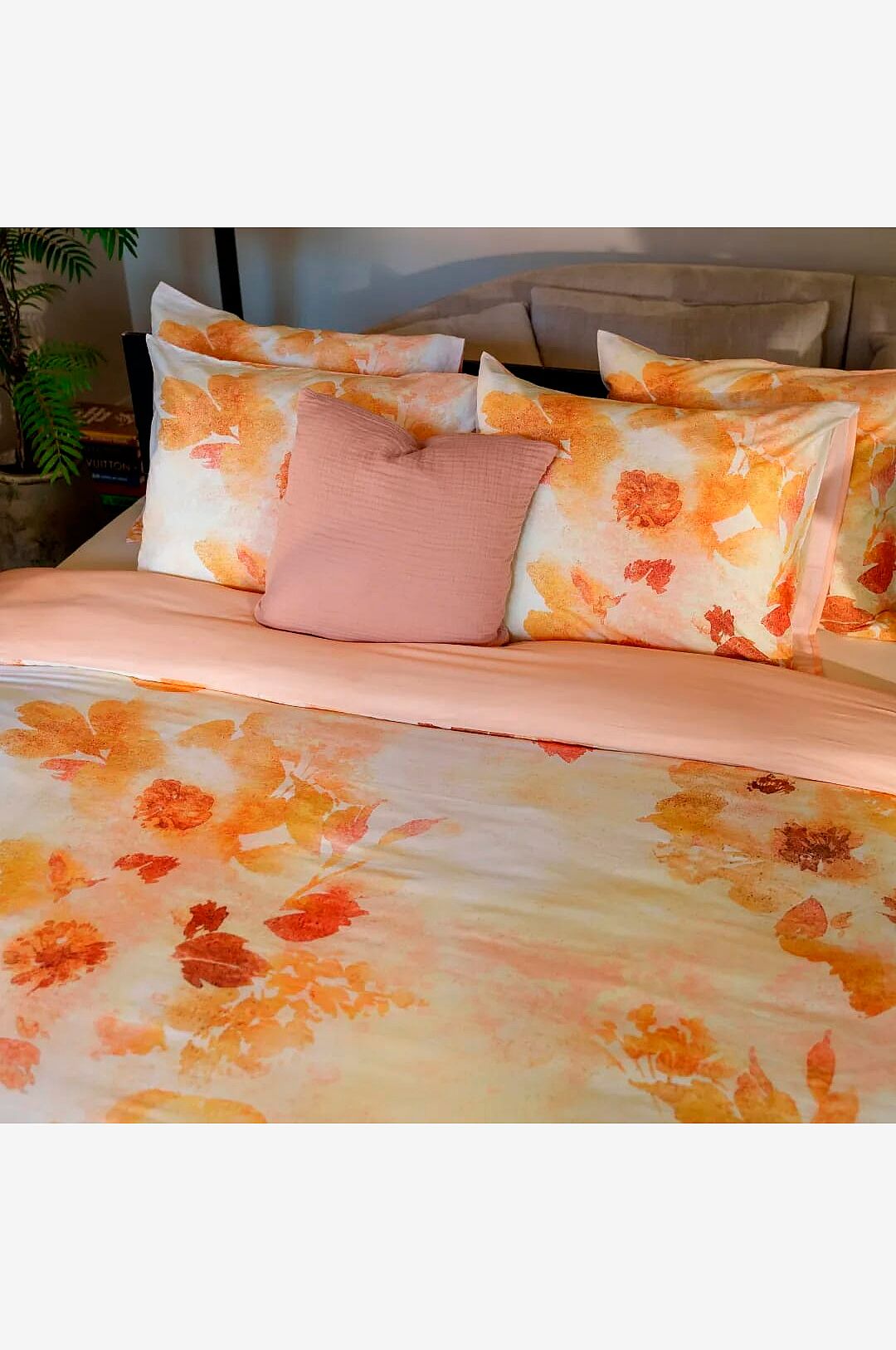 Påslakanet souma har en mjuk, romantisk design. Den har drömlika blomdesigner i mjuka toner. Den diskreta designen skapar en mjuk helhet med ett lugnande utseende.påslakanet souma är tillverkat av 100% ekologisk bomullssatin där vi använder de bästa och finaste garnerna vilket gör påslakanet väldigt mjukt, smidigt och lent. Satinbindningen skapar en diskret lyxig glans. Påslakanet är paketerat i en påse av samma material så att du redan har ett smakprov på ditt nya påslakan och en praktiskt påse att använda igen! Bäddset bestående av två örngott och ett påslakan souma påslakan
