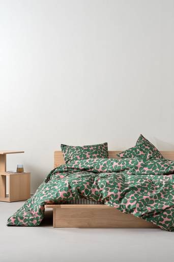Påslakanset i 3 delar designat av Maria Carlberg. Lyxig komfort med extra brett påslakan. Ett livfullt påslakan med retroinspirerat mönster. Med handhål och dolda tryckknappar, utformat för ett drömlikt sovrum. GOTS-certifierad, färgrik njutning. Licensnummer & testinstitut: NAZU GOTS 700335. Produkten är certifierad med Global Organic Textile Standard (GOTS), vilket innebär att den innehåller ekologiskt material som är odlat utan kemiska bekämpningsmedel, konstgödsel och genmodifierade grödor (GMO). Produkten uppfyller GOTS sociala och miljömässiga krav på ansvarsfull tillverkning från odling till slutprodukt. Design: Maria Carlberg. Material: 100% Bomull. Set i 3 delar: 1 påslakan 220×210 cm, 2 örngott 60×50 cm. Öppning i övre hörnen på påslakanet, som underlättar att trä påslakanet över täcket. Trådtäthetför 144 TC. (Trådantalet avser antalet trådar, trådantal, per kvadratcentimeter i ett tyg. Ju högre trådantal, desto högre kvalitet). Maskintvätt 60°. Använd inte blekmedel. Torktumla i normal temperatur. Strykning hög temp. Högsta temp. 200°C. Kemtvätt (endast petroleum-lösningsmedel). Krympning max 5 %. Tvättas med avigsidan ut.