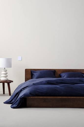 ZACK SATIN påslakanset dubbelsäng – ekologisk Mörkblå