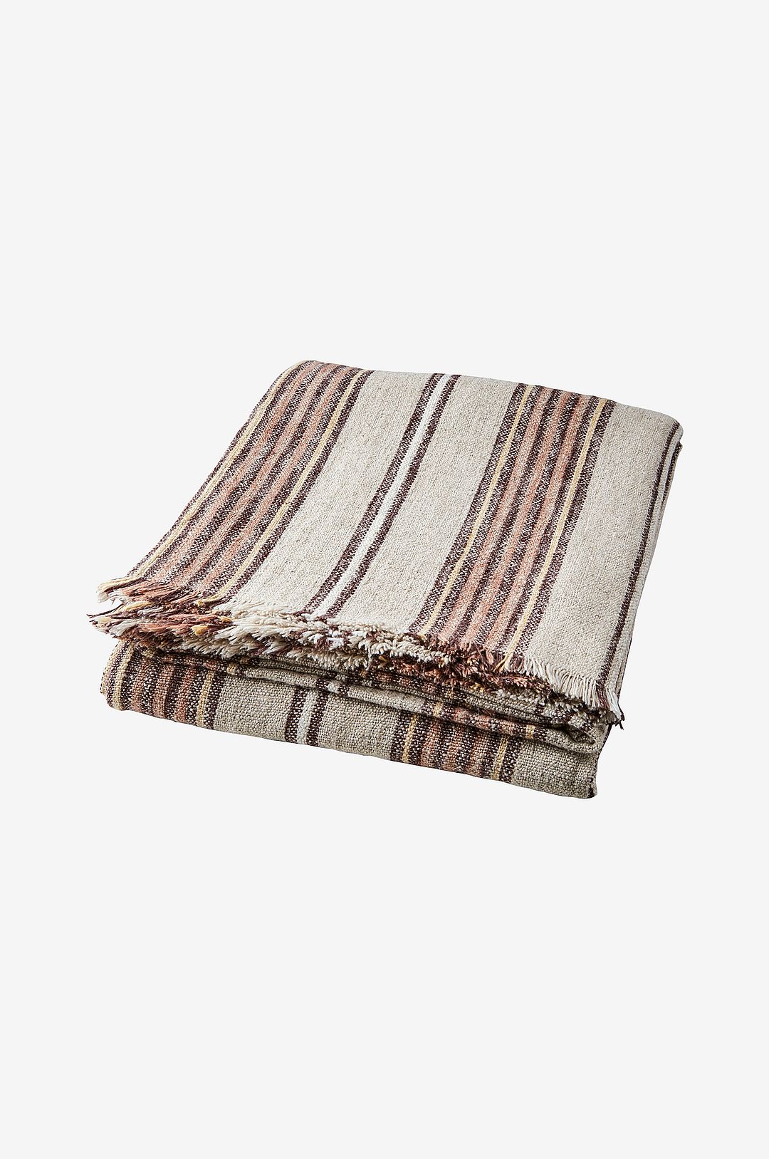 Snyggt randig filt som även fungerar som bordsduk i en blandning av linne och bomull. Den har en rustik design med fransiga kanter och jordnära toner. maskintvätt 30°.