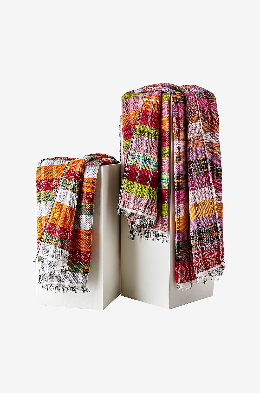 Flerfärgad filt skapad av bomullskläder. Med solveig får du en inredningsdetalj och en möjlighet att hjälpa till att förvandla det förflutna till något användbart och vackert i nuet. Endast handtvätt.