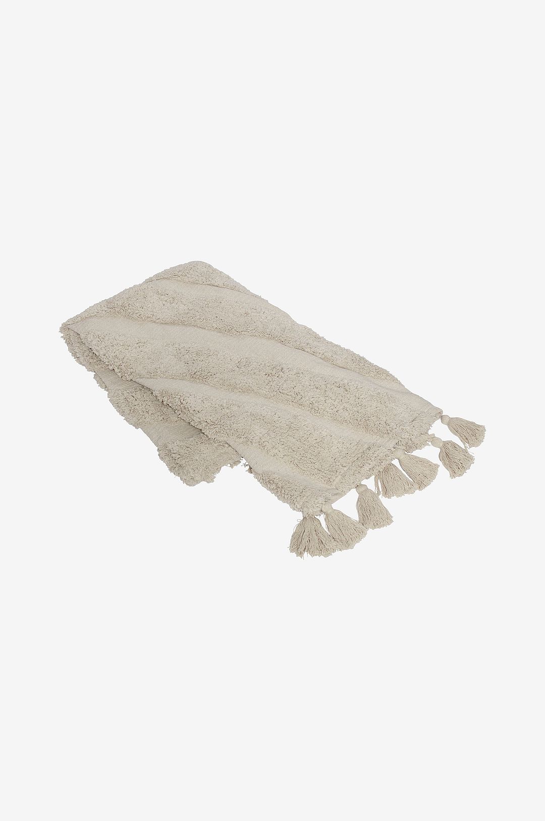 Pläd med tuftat mönster på framsida och med dekorativa toffsar på kortsidorna. Mått 130x150cm. 100% bomull. 30°c fintvätt.