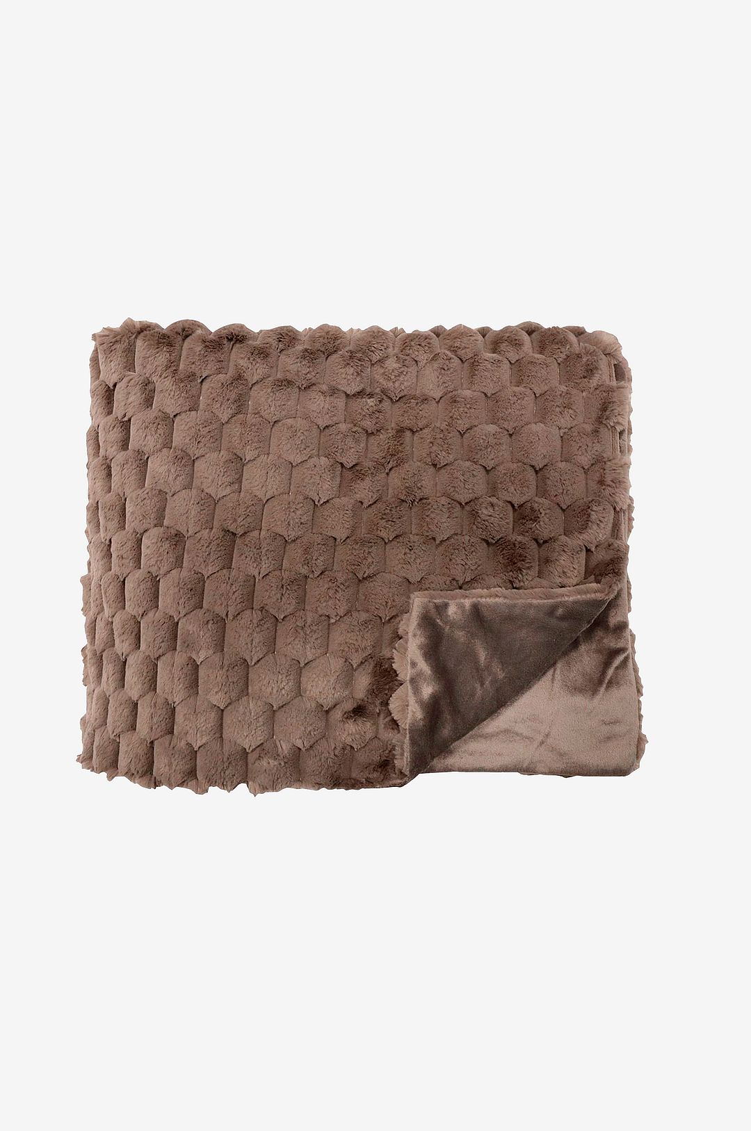 Pläd med extra mjuk fuskpäls på framsidan och mikromink på baksidan.
