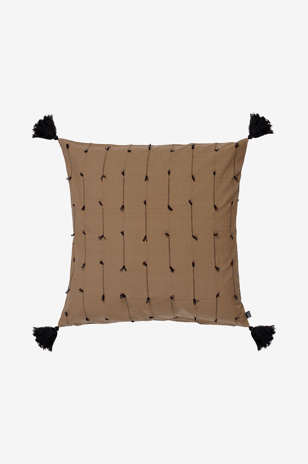 Kuddfodral med sydda detaljer och dekorativa toffsar i kanterna, dragkedja i nederkant. Mått 60x60cm. Innerkudde köpes separat. 100% bomull. 30°c fintvätt.