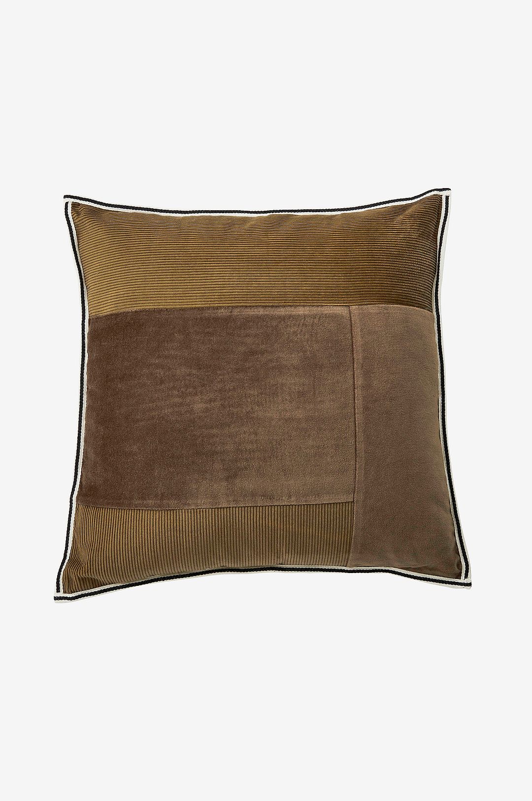 Unik kudde med sammet och manchestertyg i olika block. Baksidan är helt i sammet med dragkedja. Sydda textilband som kontrast runt om. Tillverkad av 100% bomull. Innerkudde ingår. Designad av Ann Ringstrand. Certifierad OEKO-TEX 100 vilket innebär att textilen är fri från skadliga kemikalier.