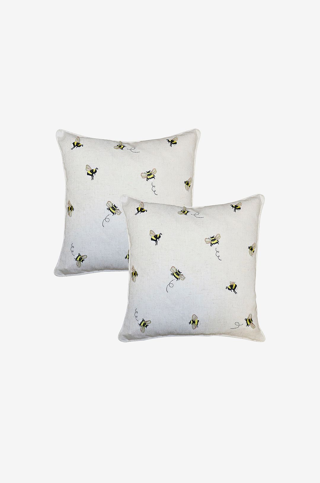 Kuddfodral med broderade humlor med ’3d wings’ på framsidan. Enfärgad passpoal och dold dragkedja i nederkant, 2-pack.
