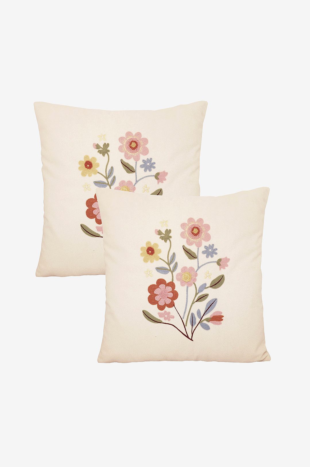 Mjukt och mysigt kuddfodral i kortluggad ’teddy’-kvalitet med broderade blommor. Enfärgad baksida och en dold dragkedja nedtill.