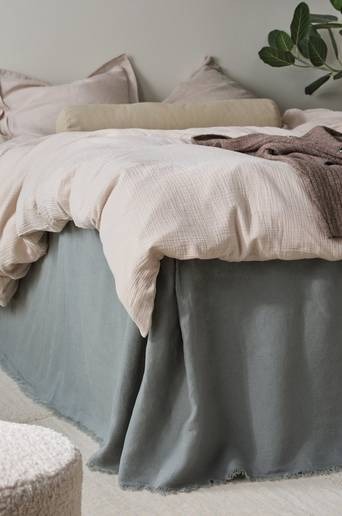 Sängkappa av tvättad lin med rå franskant nertill och platta (ovansida) av bomull. Lin är ett fint naturmaterial med speciella egenskaper och härlig känsla. FRINNY är lika snyggt som mjukt och skönt, det enfärgade linneprogrammet är helt tidlöst. När linet tvättas får det ännu mjukare struktur. I serien FRINNY har alla delar råa kanter med liten frans. Jotex samarbetar med Better Cotton för att förbättra bomullsodlingar över hela världen. Better Cotton är en global, ideell organisation som utbildar bomullsodlare i metoder för en mer hållbar bomullsodling och arbetar för en mer effektiv användning av vatten och minskad användning av bekämpningsmedel. Better Cotton ger bomullsodlare förbättrade sociala, ekonomiska och miljömässiga villkor. Genom att välja våra bomullsprodukter stödjer du vår investering i Better Cottons uppdrag. Better Cotton ingår i ett massbalanssystem och kan inte fysiskt spåras till slutprodukter. För mer information om Better Cotton, besök bettercotton.org/learnmore Material: Kjol 100% lin. Topp 100% bomull. Storlek: Höjd 60 cm. Välj storlek vid beställning. Skötselråd: Tvätt 40°. Krympning max 5%. Tips/råd: Lin är en fantastisk kvalitet som är lika snygg och behaglig, du väljer om du vill ha det struket och slätt eller avslappnat skrynkligt.