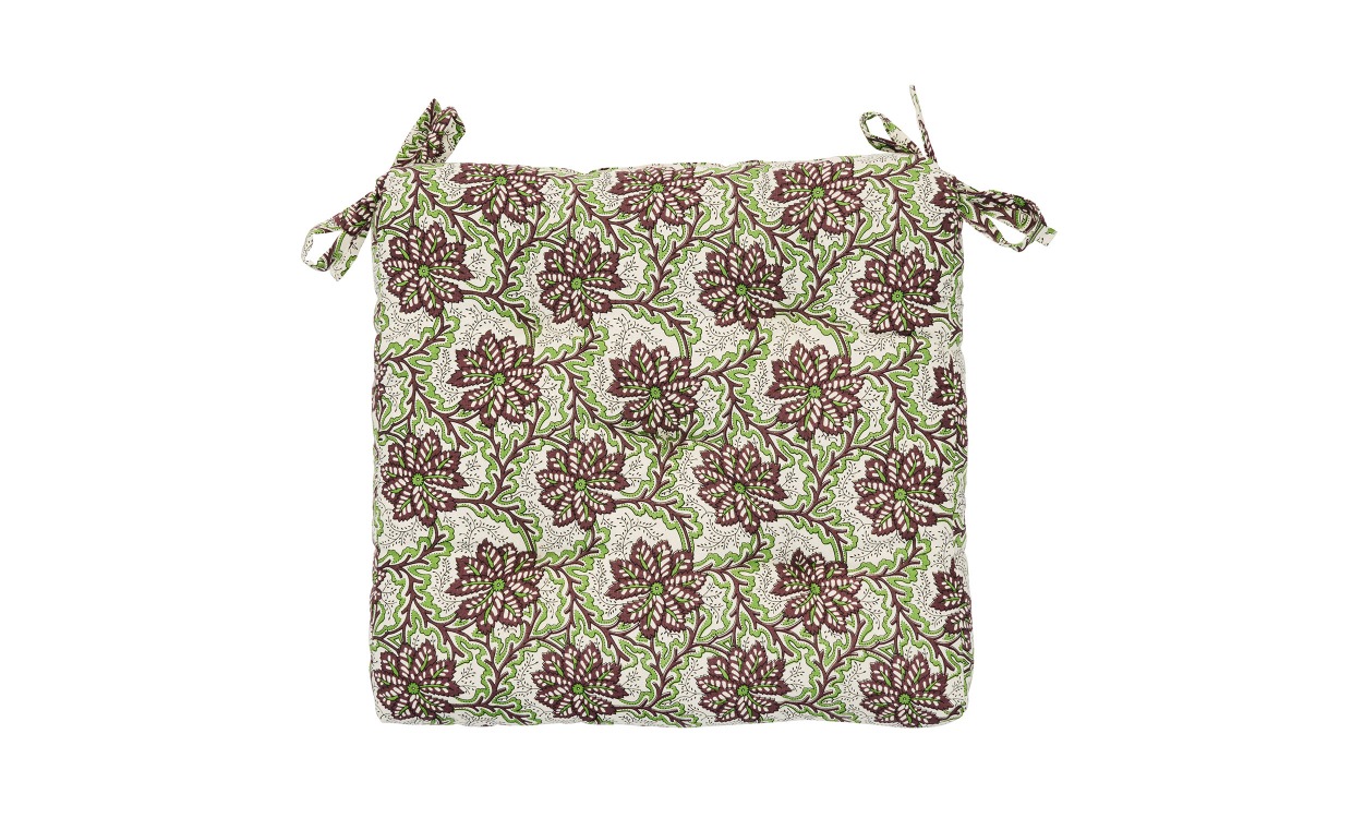 Ge din sittplats en naturlig och ombonad känsla med denna mönstrade stolsdyna i bomull. Det blommiga motivet i brunt, grönt och offwhite är inspirerat av traditionella indiska blocktryck och skapar ett varmt och levande uttryck. Dynan är tillverkad i slitstark bomull med bomullsfyllning och praktiska knytband som håller den stadigt på plats. Den passar de flesta stolar och matchar bänkdynan i samma serie för en enhetlig helhet.Obs! Sittdynan säljs i 2-pack, priset är angivet per styck.Design & egenskaperDekorativ stolsdyna från Madam Stoltz. Mått: 45 x 45 cm.Vikt: 0.95 kg.Material & skötselTillverkad i bomull.Rengör fläckar med en fuktig trasa.Undvik direkt solljus för att förhindra att färgen bleknar.Låt torka helt innan återanvändning och förvara på en torr plats när den inte används.