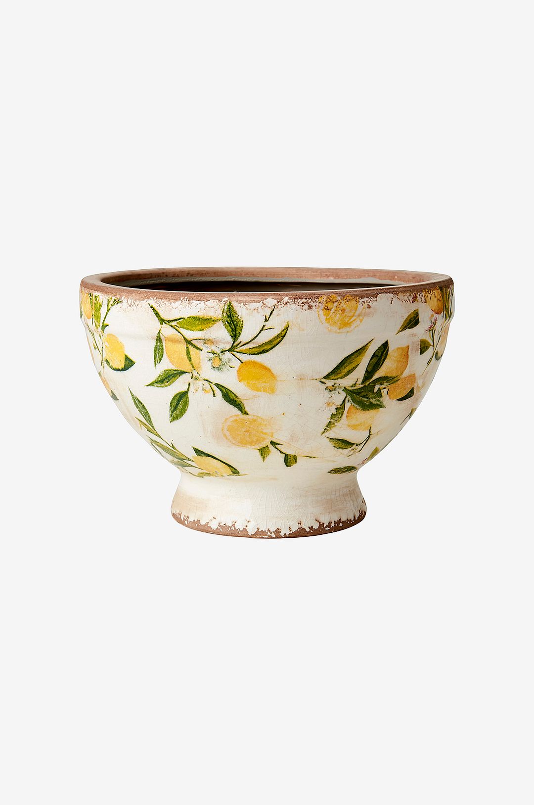 Vacker kruka med citronmönster. Poröst material, använd vattentät bricka för att undvika fläckar.