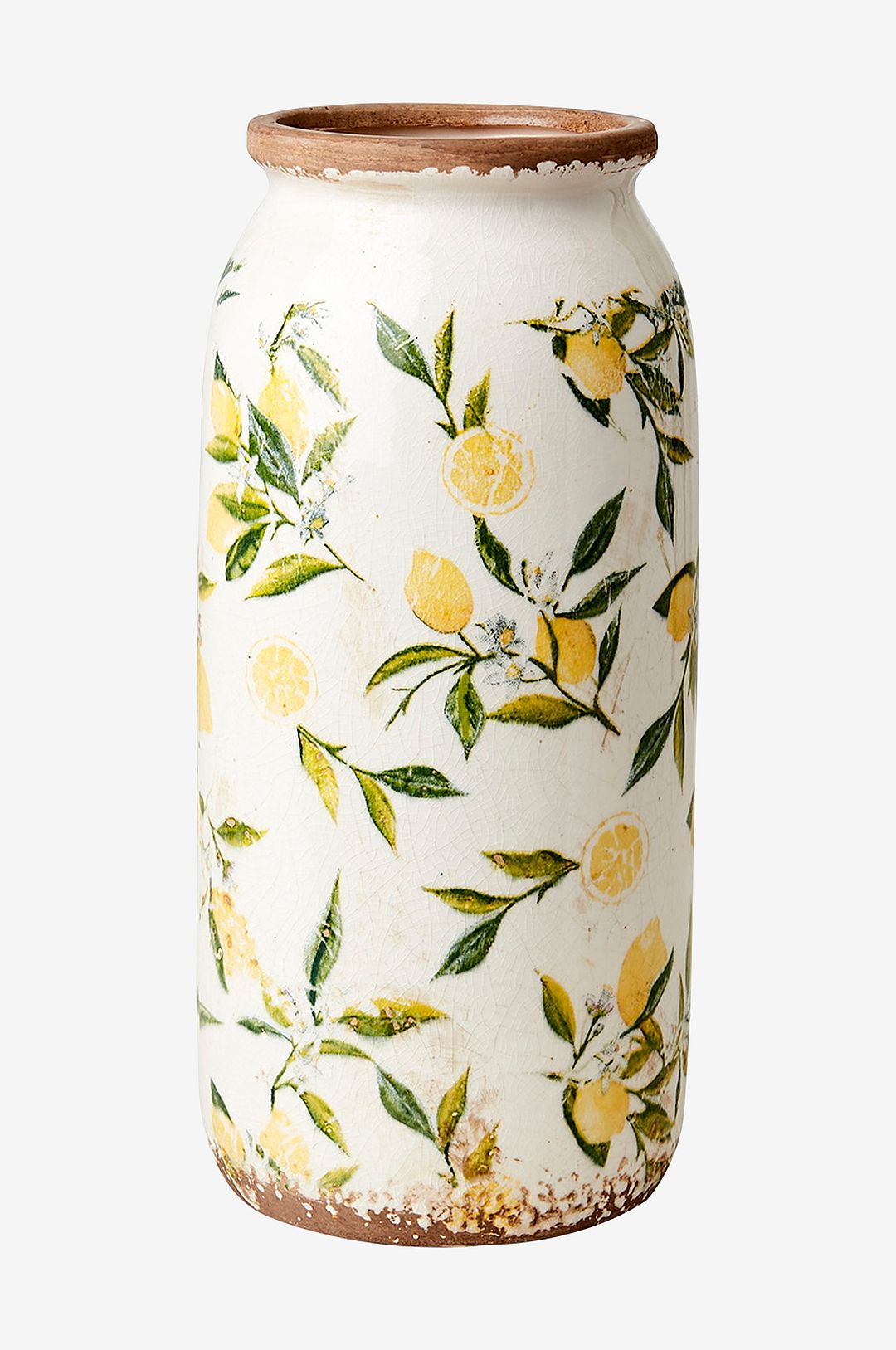 Vacker urna med citronmönster. Poröst material, använd vattentät bricka för att undvika fläckar.