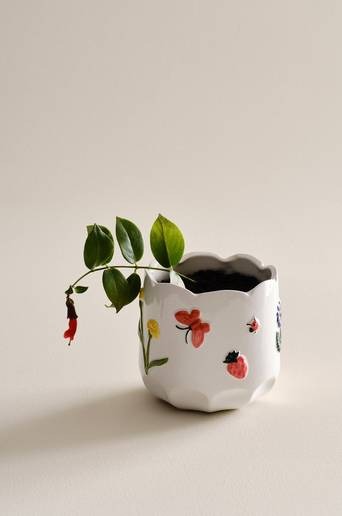 Krukan ALMA är dekorerad med fantastiska blommor och söta småkryp som är handmålade. Krukan är tillverkad av keramik. Den ger en härlig sommarkänsla. Det fina hantverket gör varje produkt unik. Material: keramik. Storlek: höjd 15 cm, ø 16 cm. Öppning ø: 13.5 cm. Skötselråd: Torkas av med lätt fuktad trasa. Tips/råd: Tänk på att keramik kan släppa igenom fukt!
