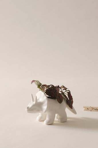 Kruka av keramik. Krukan har formen av en dinosaurie, söt och liten, passar pefekt i barnrummet. Ut- och insidan är glaserad i samma färg. Tänk på att keramik kan släppa igenom fukt. Material: Keramik. Storlek: Höjd 9,5 cm, bredd 16,8 cm, djup 8,2 cm. Tips/råd: En liten dinosaurieparad med små gröna växter piggar upp fönsterbrädan.
